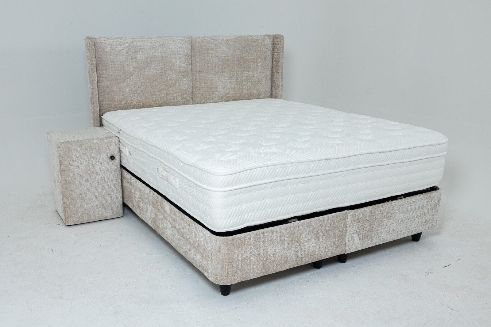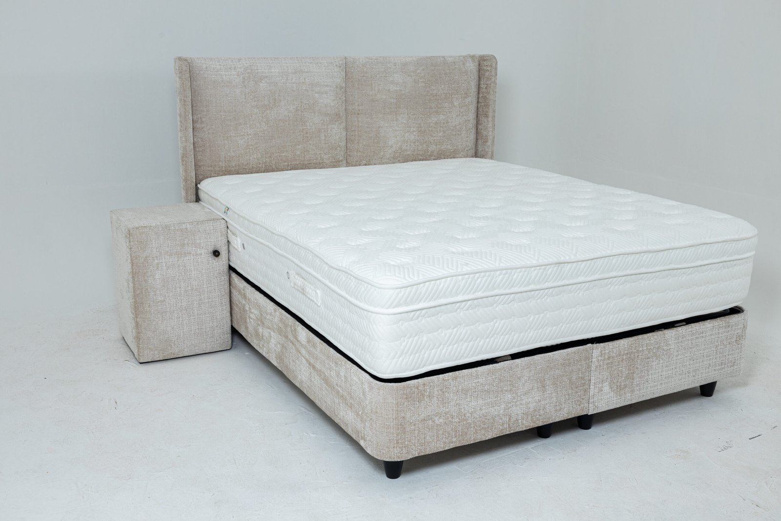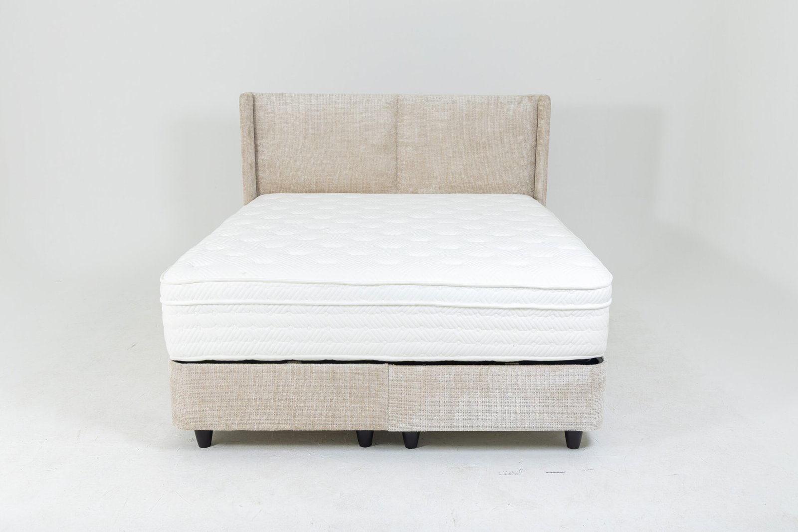 Wind karakteriše smirena estetika i precizno definisana forma. Uzglavlje sa jasno podijeljenim poljima stvara moderan, arhitektonski izgled koji prostoru daje strukturu i stabilnost.