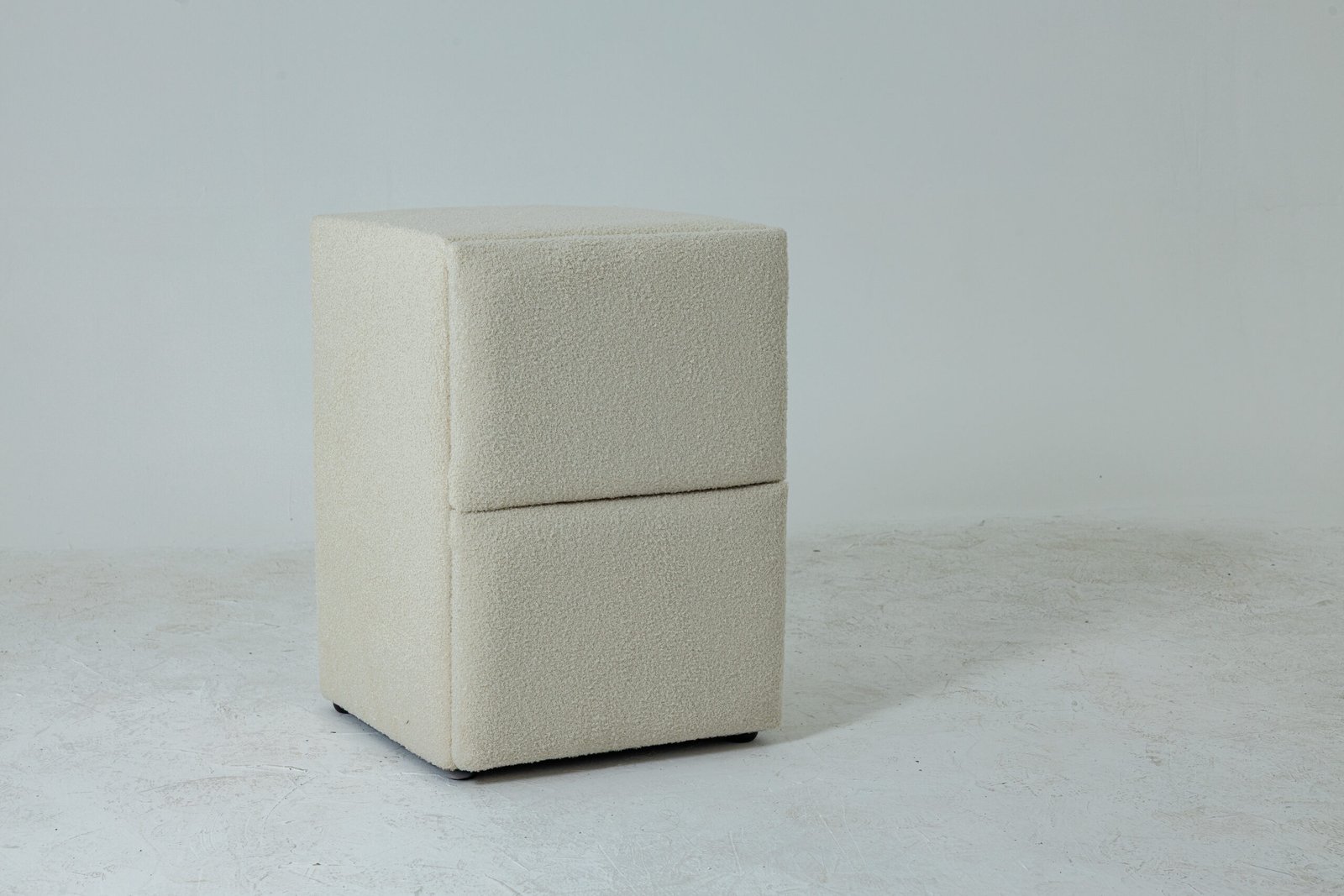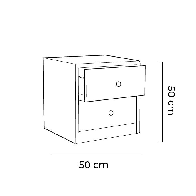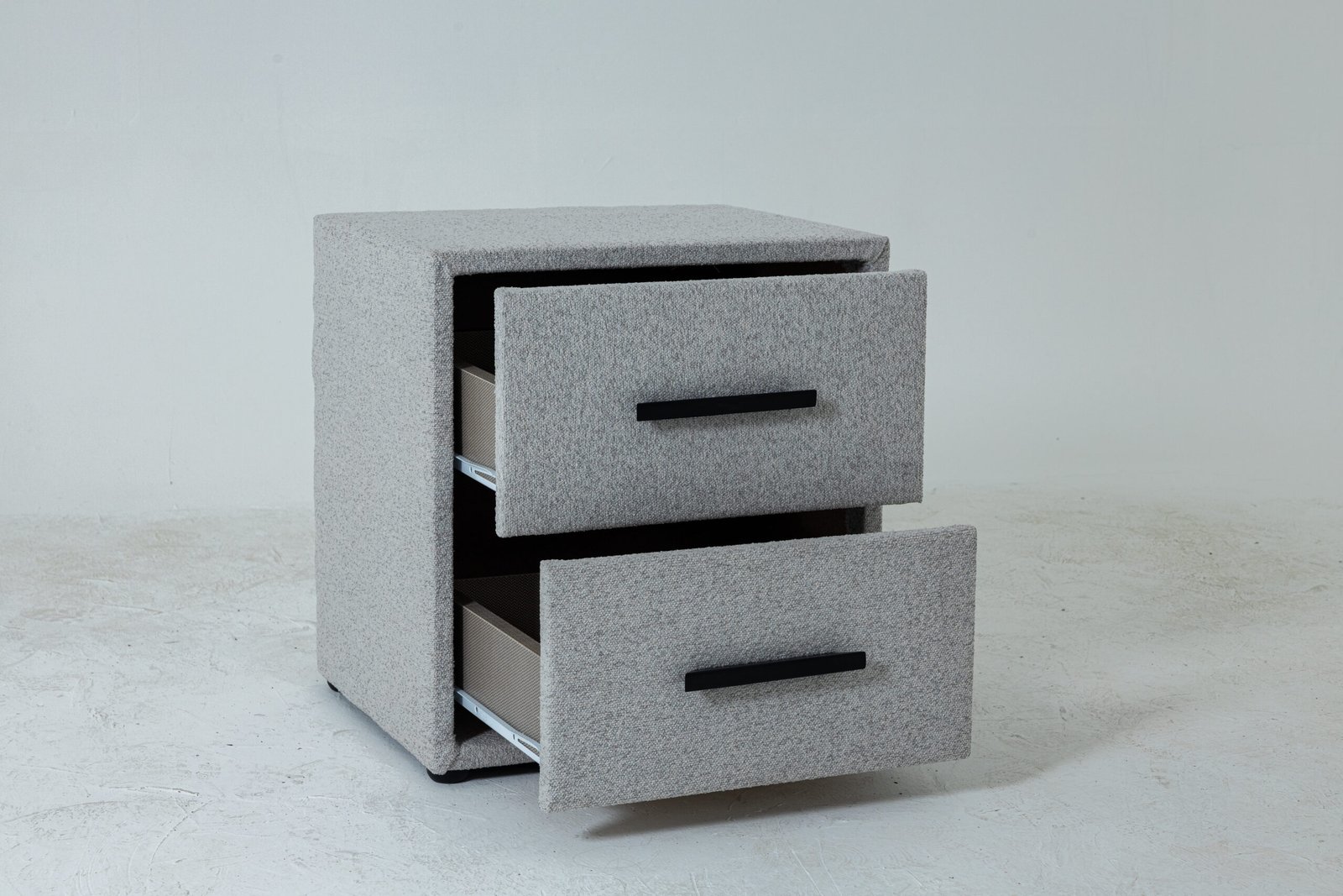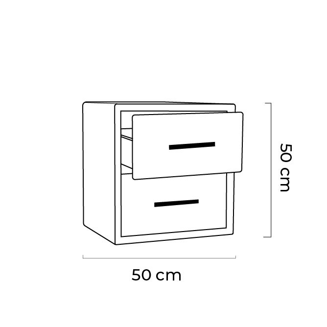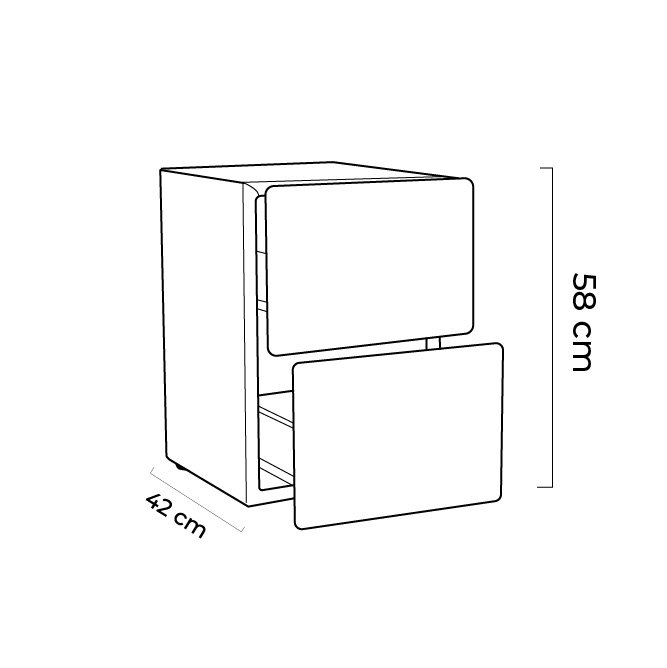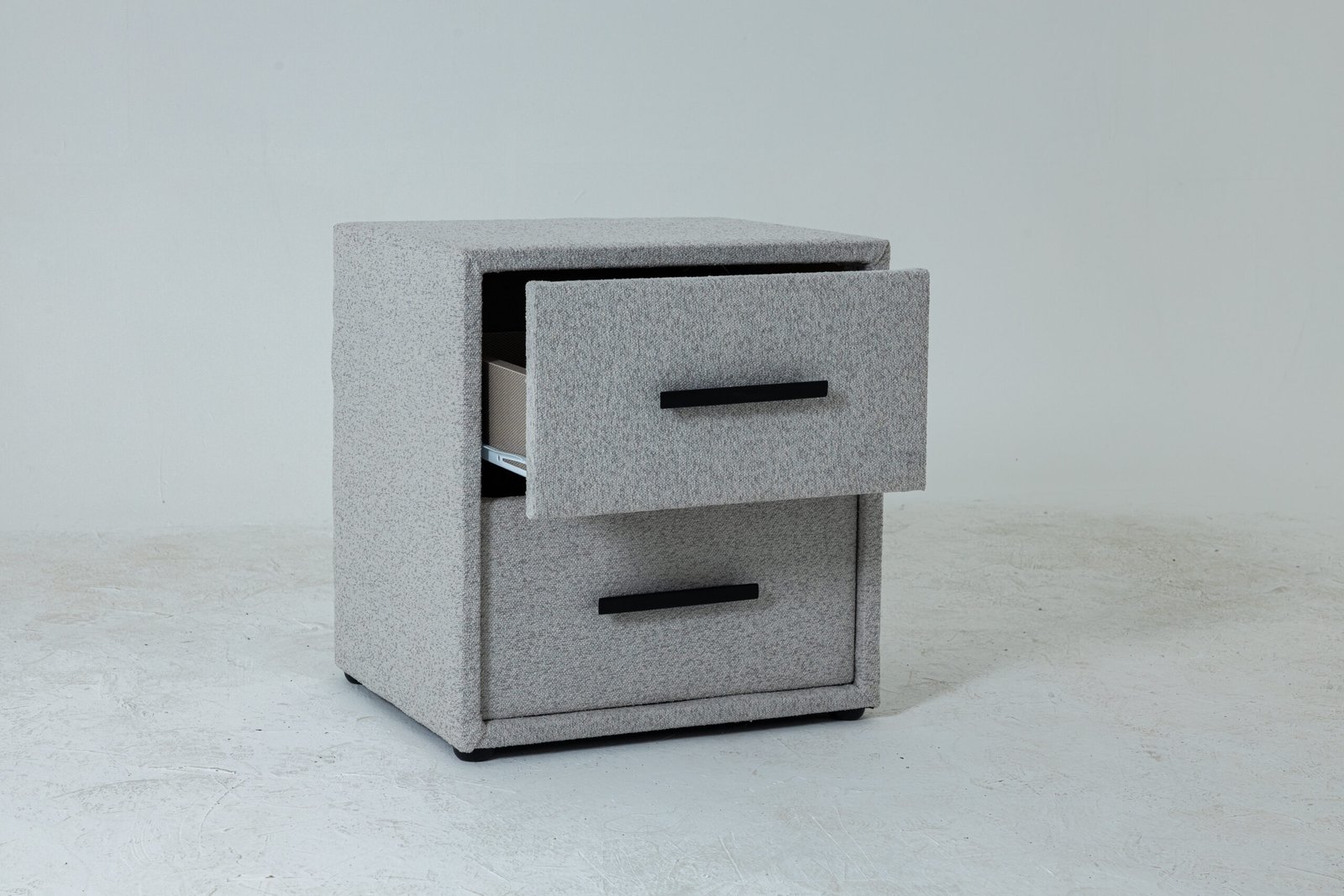 Julieta noćni ormarić ističe se mekom teksturom i zaobljenim ivicama koje mu daju savremen, ali suptilan izgled. Kontrastne crne ručkice unose dozu dinamike i jasno definišu liniju ladica, stvarajući sklad između funkcionalnosti i dizajna.
