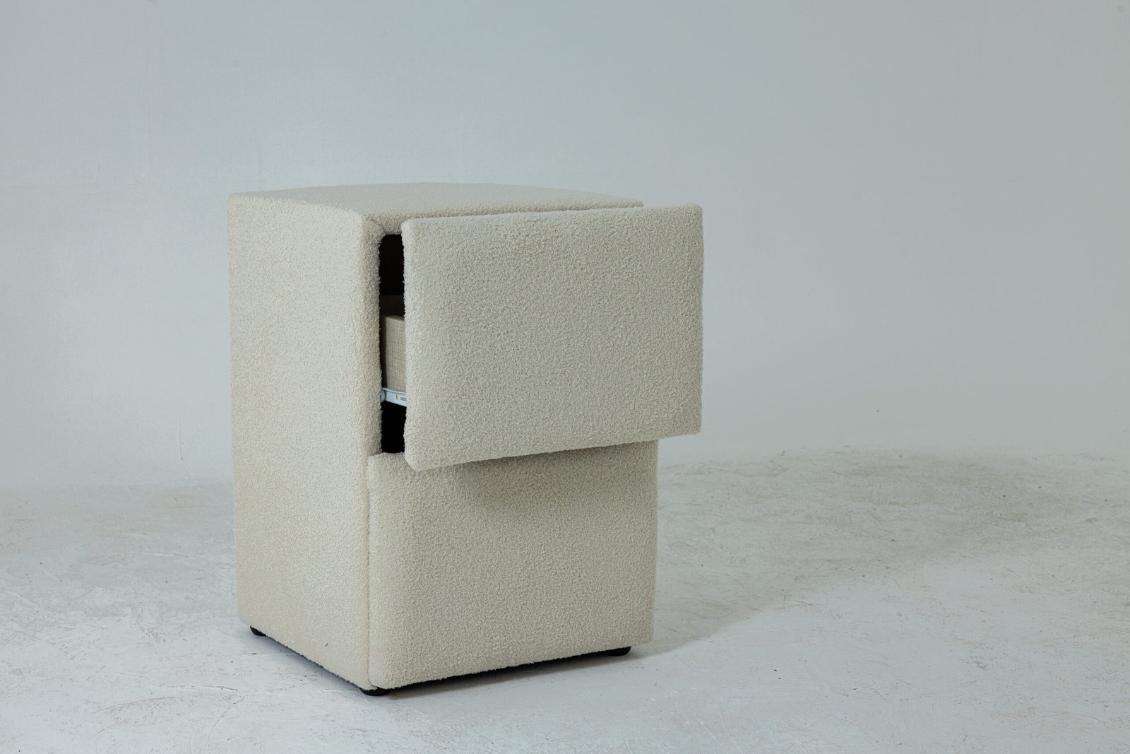 Aura noćni ormarić odiše toplinom i suptilnom elegancijom zahvaljujući mekanoj teksturi i zaobljenim linijama. Njegov kompaktan dizajn sa praktičnom ladicom pruža funkcionalnost uz sofisticiran, moderan izgled koji se savršeno uklapa uz tapacirane krevete.