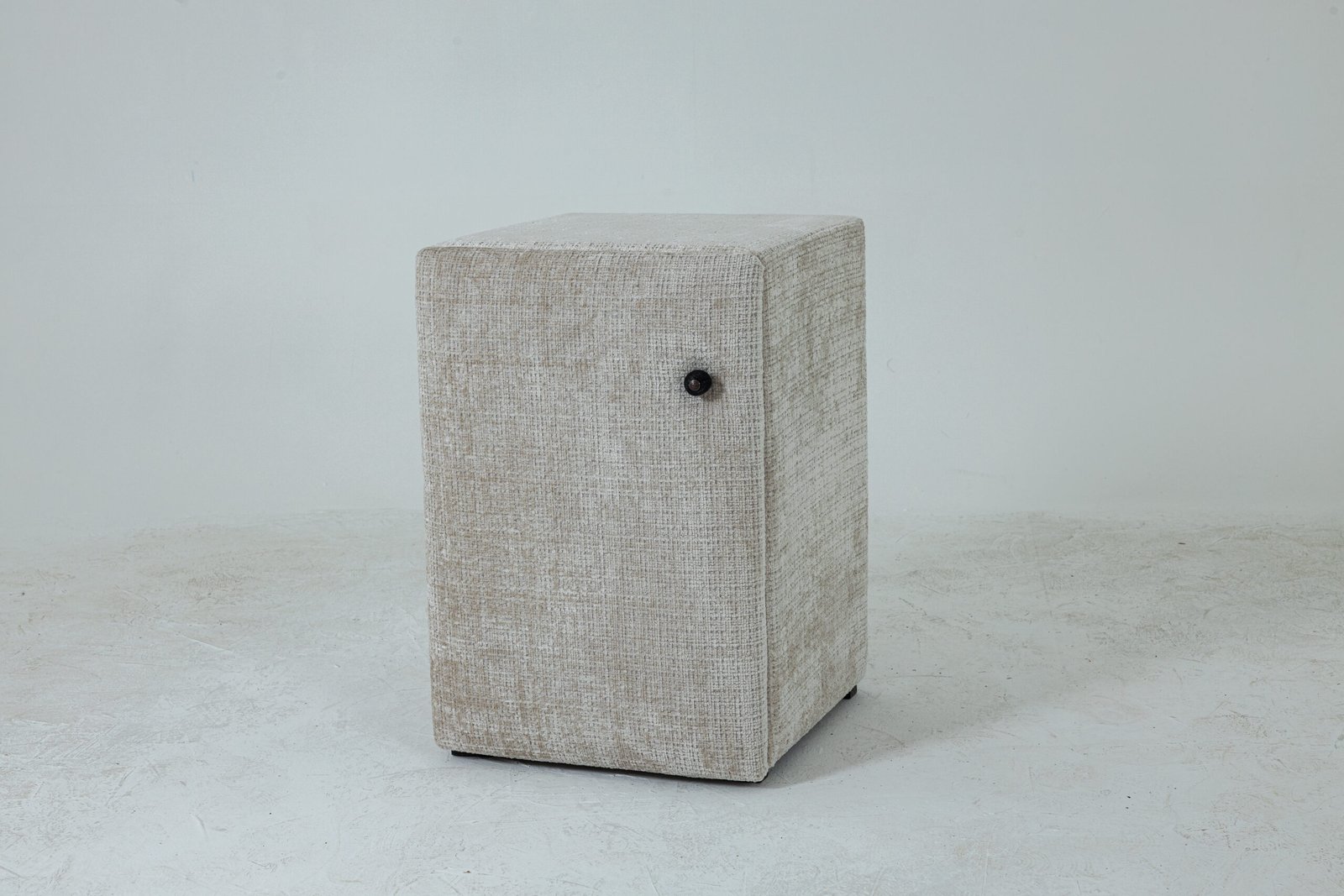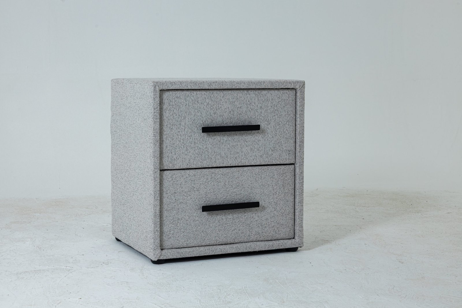 Roy noćni ormarić donosi sveden, monolitni izgled sa jasno naglašenim ivicama i proporcijama koje djeluju stabilno i čvrsto. Tapacirana završnica i profinjene ručkice daju mu sofisticiran ton, čineći ga samostalnim akcentom koji se lako uklapa u različite ambijente.