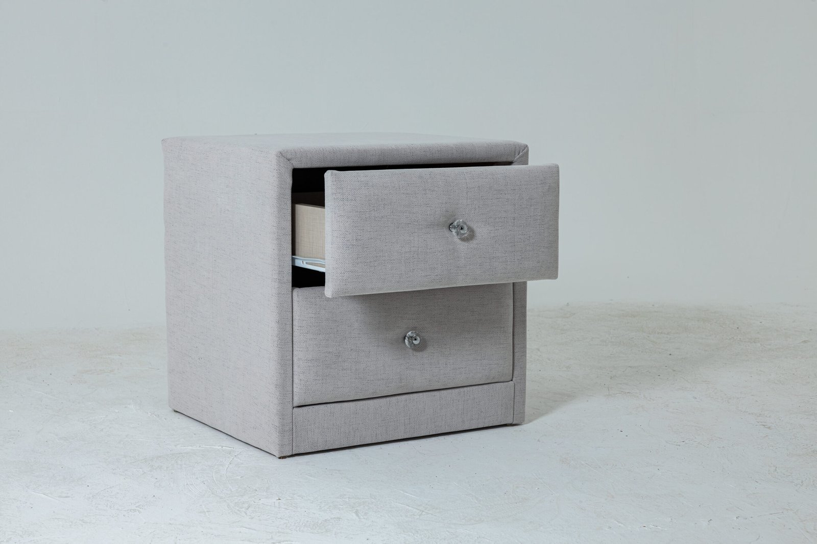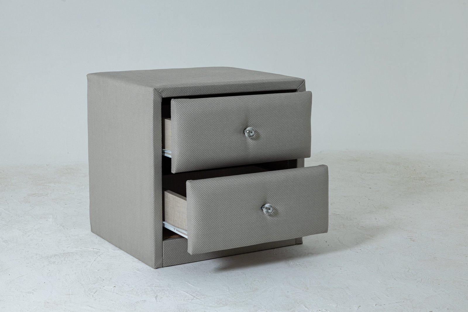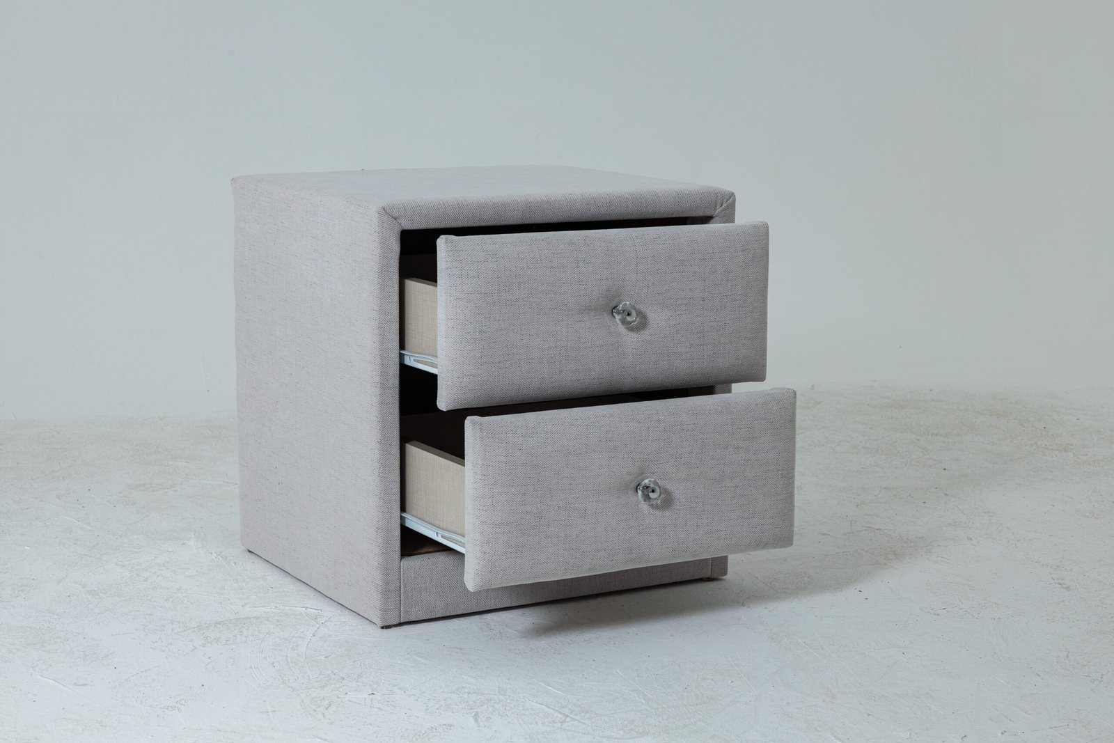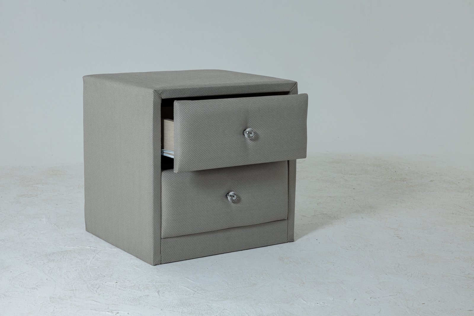 Romance noćni ormarić prati estetiku istoimenog kreveta kroz precizne linije i tapaciranu završnicu koja daje skladnu, zaokruženu cjelinu. Dvije ladice sa profinjenim ručkicama pružaju funkcionalnost bez narušavanja elegantnog i urednog izgleda kompozicije.